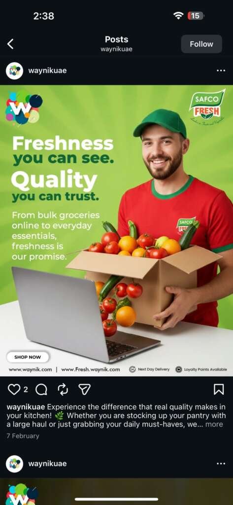 Waynik UAE is a popular grocery store in the United Arab Emirates offering a wide range of daily essentials, fresh produce, and imported goods. With a strong focus on customer convenience and variety, the brand sought to enhance its digital presence and attract more local shoppers through effective online engagement.
